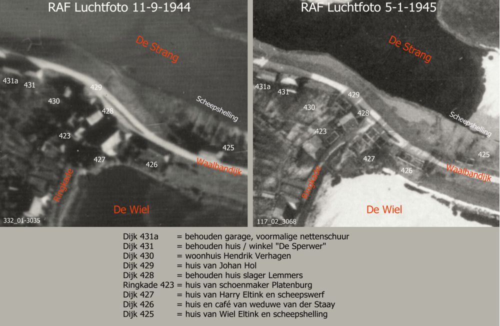 Terwijl Harry op de hoek Ringkade woonde, bouwde Wiel Eltink dit huis, dat stond bij de scheepshelling op de dijk aan de rivierzijde. Wiel trouwde met Mien van Lent uit Dreumel en kreeg een dochter.
