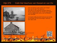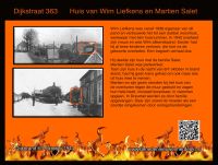 “Wij kwamen bij Wim Lemmers, de slager, de dijk op (oprit Ringkade). Daar moet ik oog in oog gestaan hebben met de ramp die zich op de dijk heeft afgespeeld. Het eerste wat me is bijgebleven waren de nog brandende vaten olie en teer, die buiten of binnen het onderhuis van Van Os (café het Veerhuis) lagen te branden.