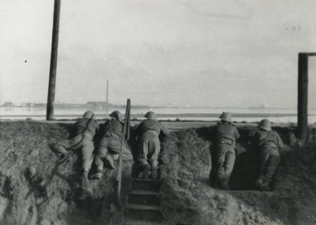 Het verzet, de ondergrondse, bewaakte de dijk vanaf september tot 10 oktober 1944. De Engelsen waren weliswaar reeds in de streek en overdag op de dijken, maar ’s nachts gingen ze naar hun hoofdkwartier elders in Maas en Waal. De dreiging was ’s nachts te groot voor de ondergrondse. Dat bleek, toen de Duitsers hier op één nacht 43 dijkhuizen in brand staken. Daarom kwam de 1e compagnie Stoottroepen naar Maas en Waal om de dijk te bewaken.