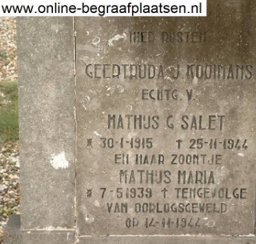 Elf dagen later werd ook zijn moeder, Truus Kooijmans, geraakt door een granaatscherf toen zij op de fiets net terugkwam van de bakker. Het drama was compleet. Mijn opa bleef alleen met drie kinderen achter. Maar het leven gaat door en later is opa hertrouwd met mijn oma, Francina van Eck. Uit dit tweede huwelijk zijn nog drie kinderen geboren waaronder mijn vader die liefkozend de naam van zijn overleden halfbroertje kreeg.